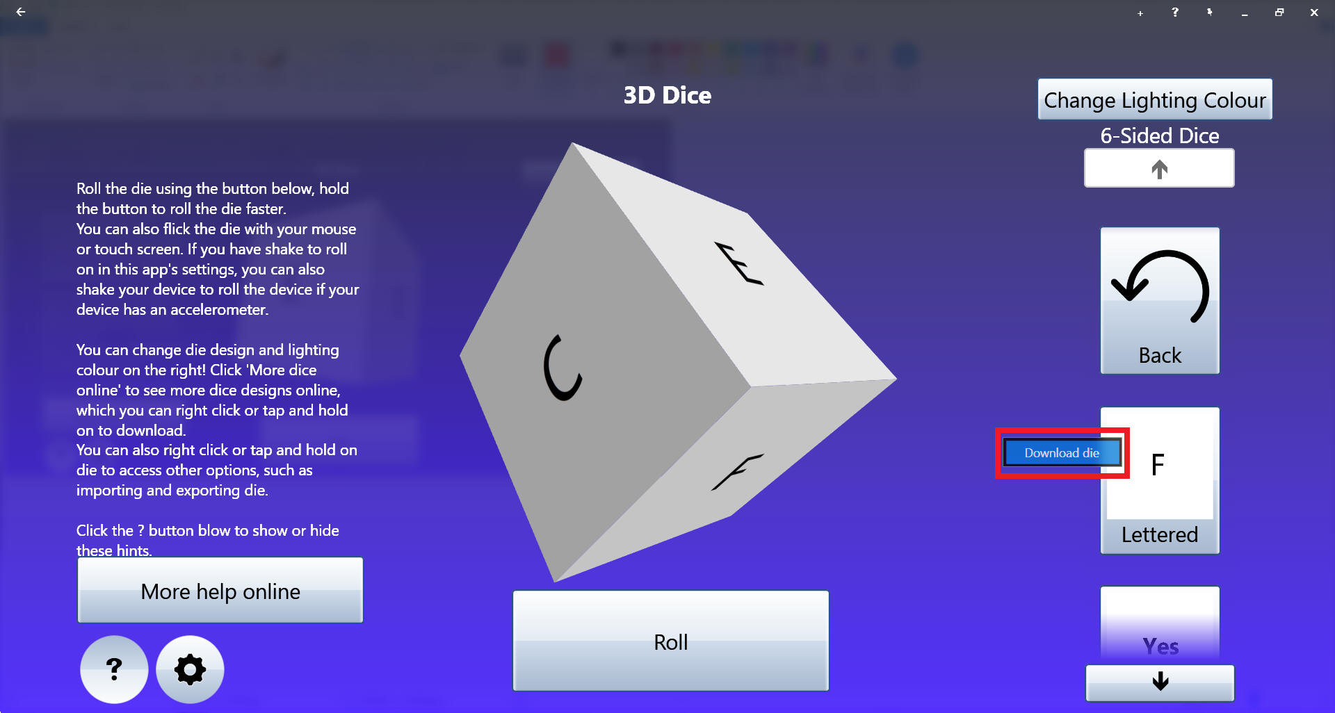 Note: The online dice feature is being discontinued and is not available in the Microsoft Store version of the app. All online dice will be included in the app in future.